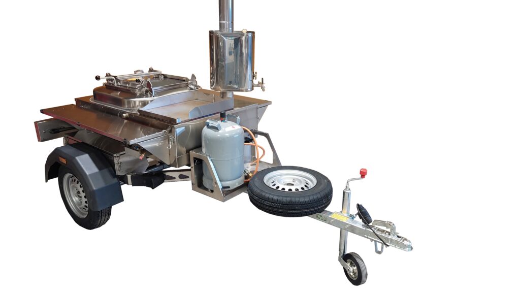mobila samt tar liten plats i förrådet. Utrustad med en 150 Liters dubbelmantlad kokgryta, stekyta och samt 25 liters vattenvärmare.
