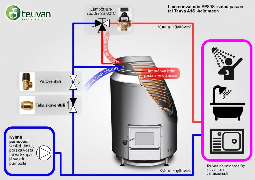 Teuvan-kokaren är en vedeldad vattenvärmare i rostfritt stål, perfekt för lantbruk, fritidshus och beredskapssituationer. Tack vare den slitstarka konstruktionen är den anpassad för utomhusbruk, även under tuffa förhållanden.
